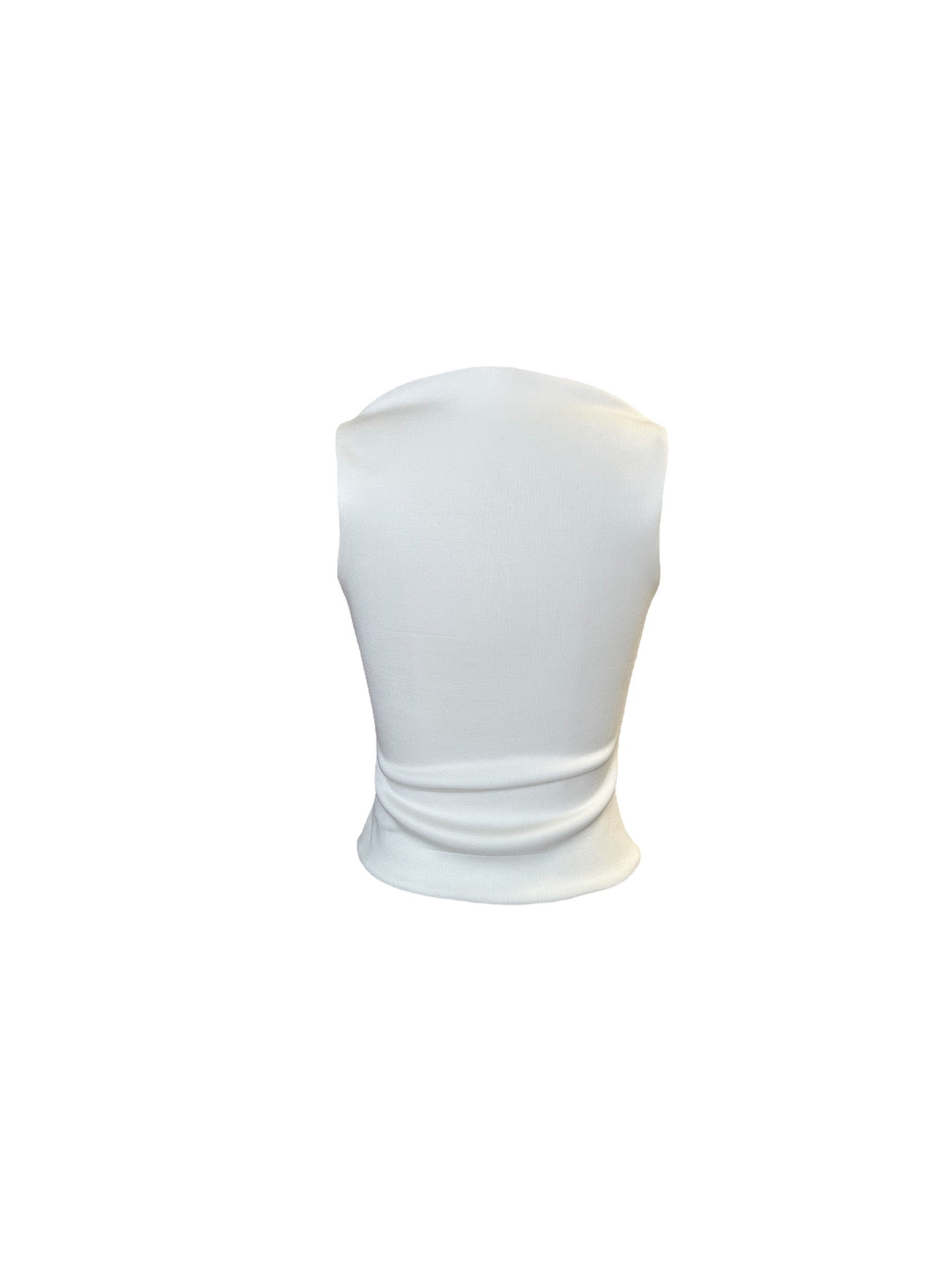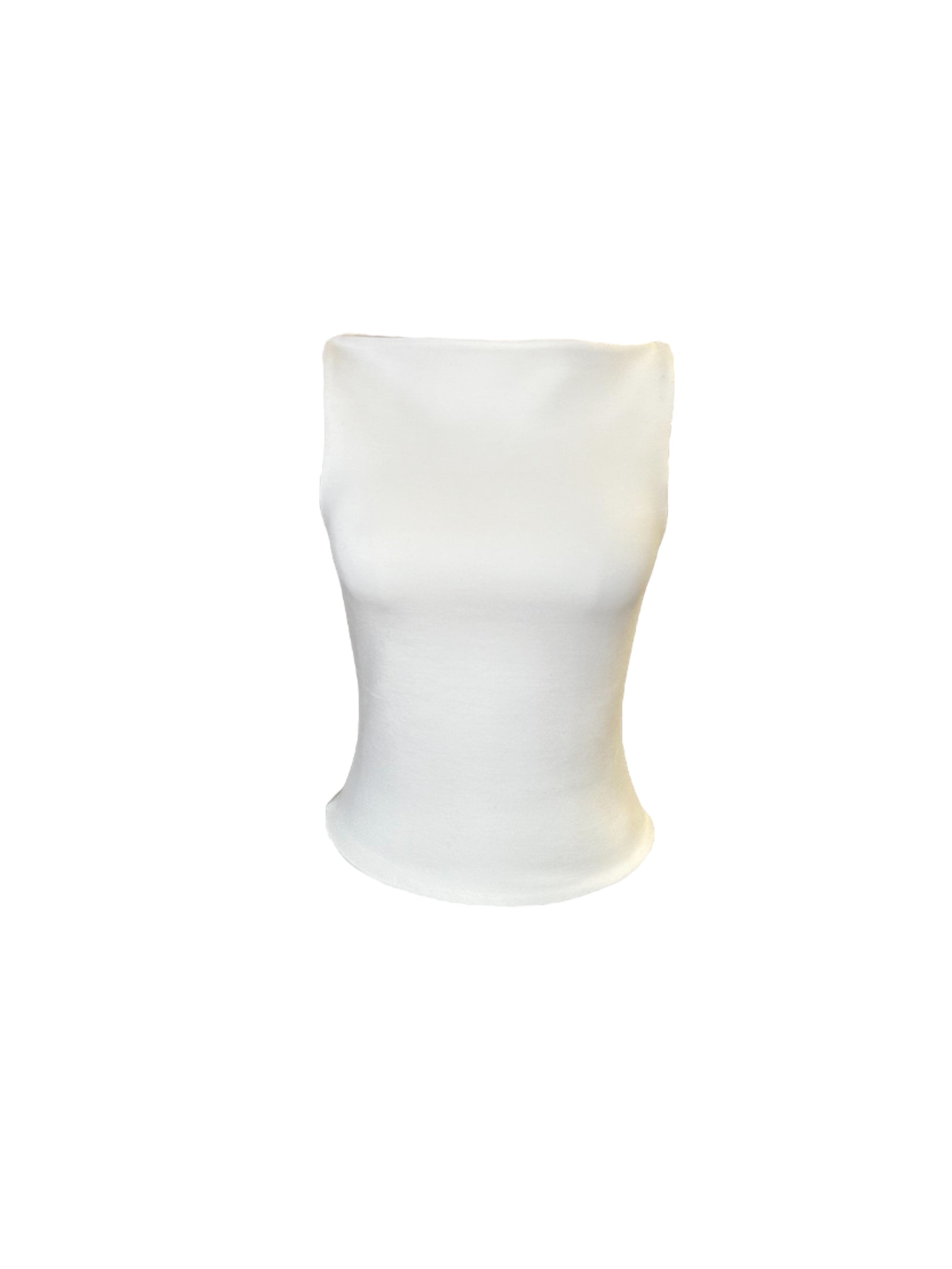 Structured high boatneck top crafted from premium cotton scuba fabric.A minimalist yet bold silhouette, designed for refined elegance and modern edge.