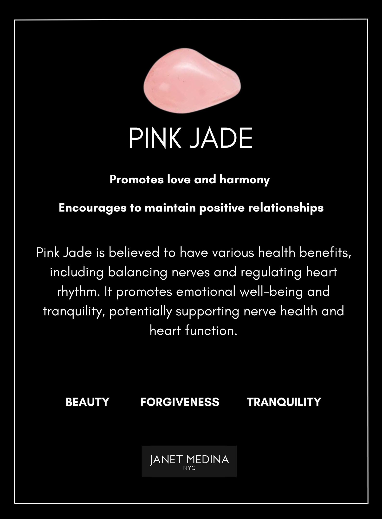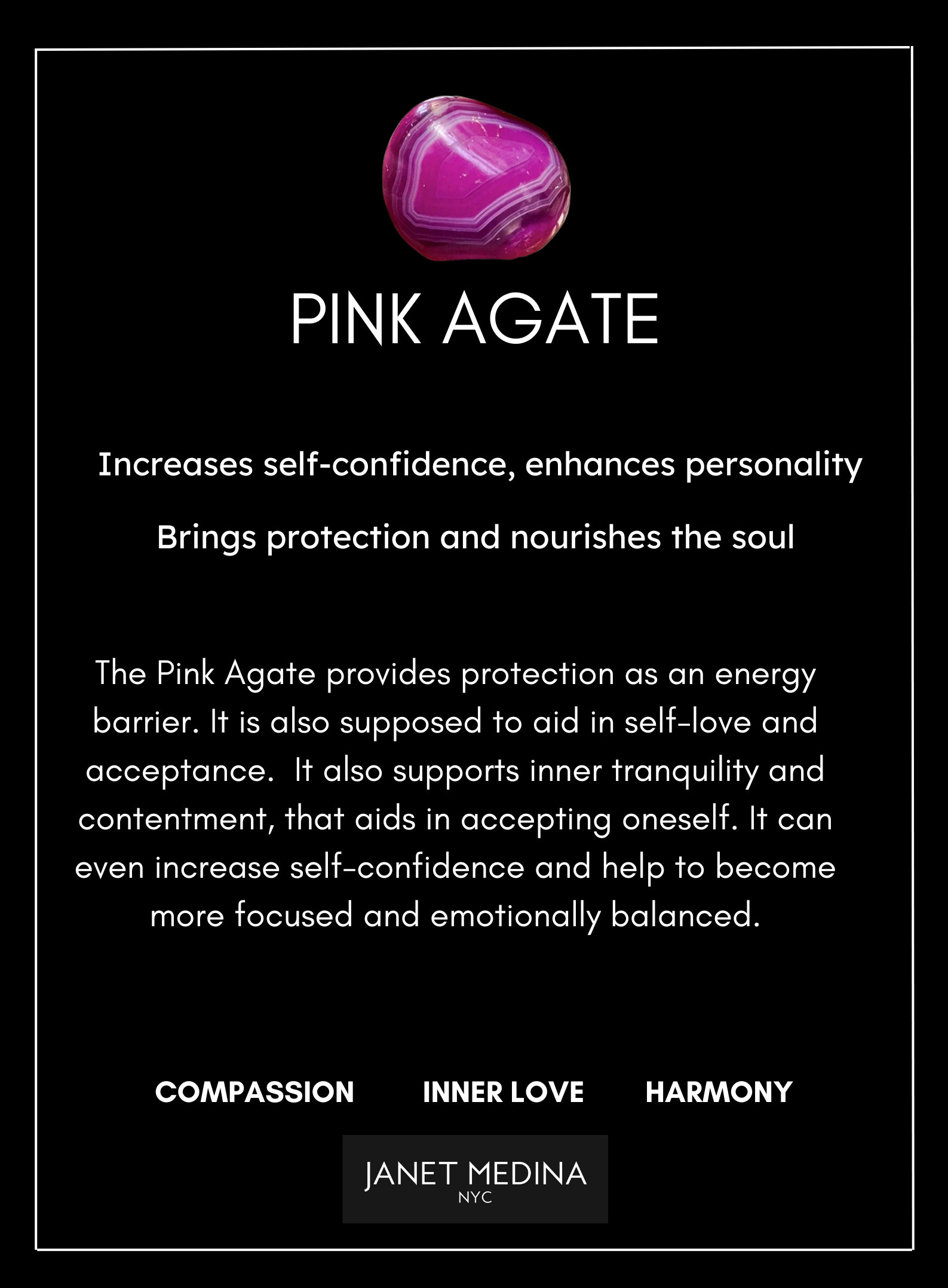 - Meticulously hand-beaded with Rose Quartz, Pink Jade, and Agate Healing Crystals